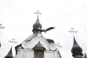 Літургія у Свято-Георгіївському монастирі ПЦУ на Козацьких могилах, лелека