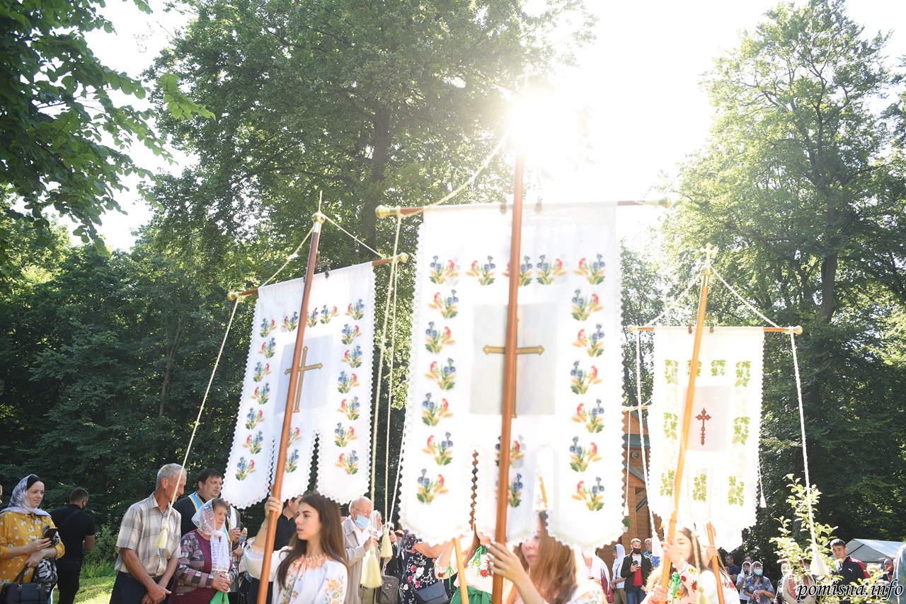 Храм у Святогірському чоловічому монастирі на Львівщині, ПЦУ, хрест, хоругви