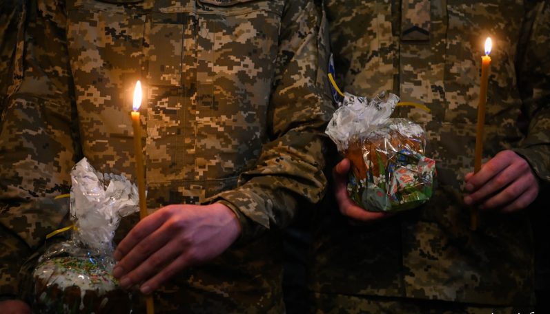 Напередодні Предстоятель Православної Церкви України освятив у Свято-Михайлівському Золотоверхому кафедральному соборі великодні паски, які відправляться до українських захисників.
