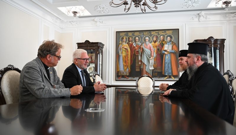 Предстоятель розповів гостям про обставини перебування духовенства ПЦУ на окупованих територіях. Зокрема, Митрополит Епіфаній зазначив, що вже кілька наших священників були вбиті окупантами, а деякі зазнали тортур.