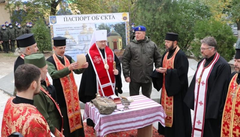 Митрополит Донецький і Маріупольський ПЦУ Сергій 13 жовтня разом з військовими капеланами Донецької єпархії звершив освячення хреста, наріжного каменя та благословив закладення капсули у фундаментну частину майбутнього храму на честь святого великомученика Димитрія Солунського.