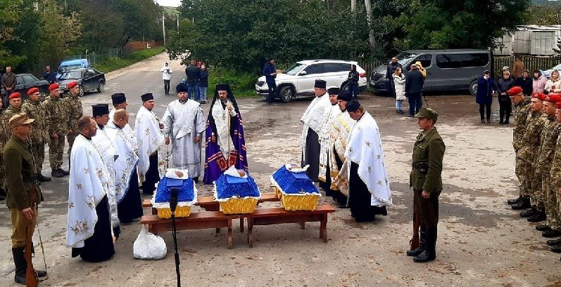 Вояків УПА перепоховали поряд із могилою солдата 24-ї ОМБр Романа Мусія, який загинув на Донбасі 2014-року, захищаючи Україну від російських окупантів.