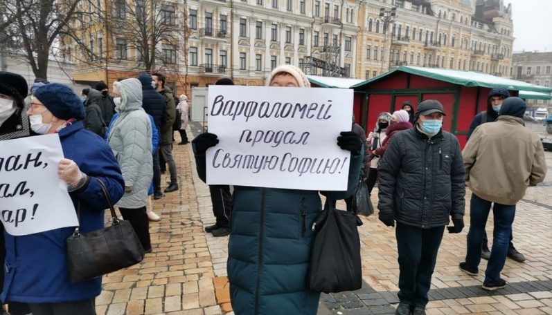 Свою акцію вони назвали мирною. Вони вважають, що надання Вселенським патріархом Томосу «розділило церкву та порушило духовну єдність країни».