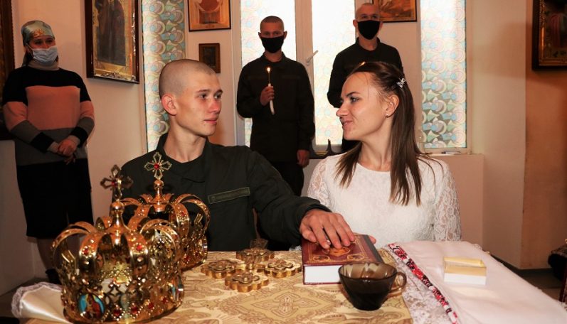Після освідчення військовий капелан Микола Візер провів обряд вінчання з молодятами в храмі Святого Миколая.