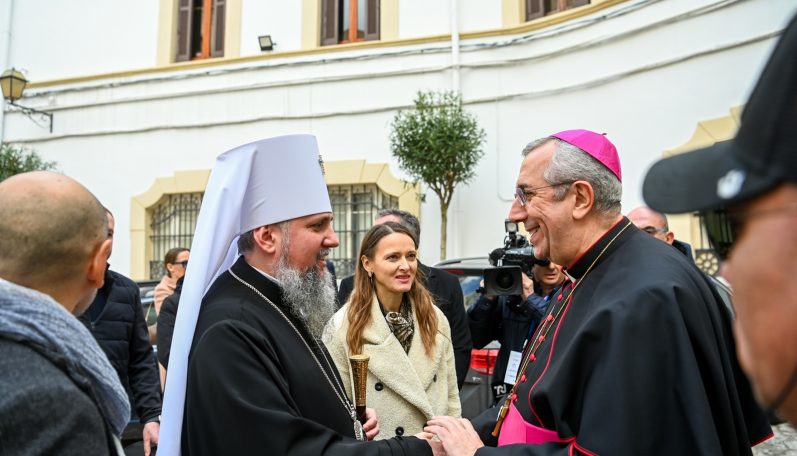 Предстоятель Православної Церкви України зустрівся з архієпископом дієцезії Римсько-Католицької Церкви Барі-Бітонто Джузеппе Сатріано у його резиденції при кафедральному соборі міста.
