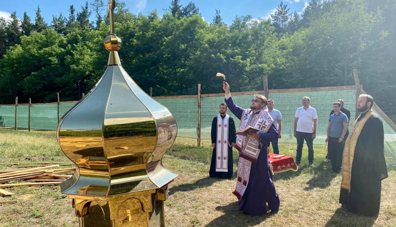 Митрополит ПЦУ Олександр (Драбинко) освятив хрест та купол, які увінчають храм на честь святителя Нектарія Егінського в однойменному монастирі в селі Ходосівка.