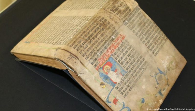 Сенсаційна знахідка: 2017 року у бібліотеці Аугсбурга виявили, що одна з обкладинок старовинних книжок з фонду – сторінка Біблії Гутенберга. На книжку не звертали увагу понад 400 років