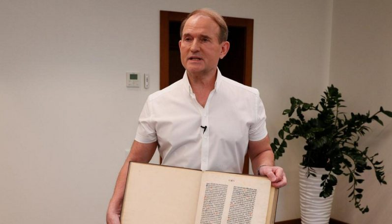 Депутат ОПЗЖ Віктор Медведчук показав фрагмент друкованої Біблії Йоганеса Гутенберга 1455 року.