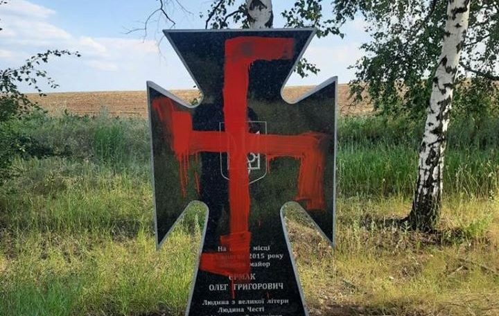 На Луганщині вандали облили фарбою пам’ятні знаки, присвячені військовим, які загинули під час виконання службових обов’язків у Попаснянському районі області.