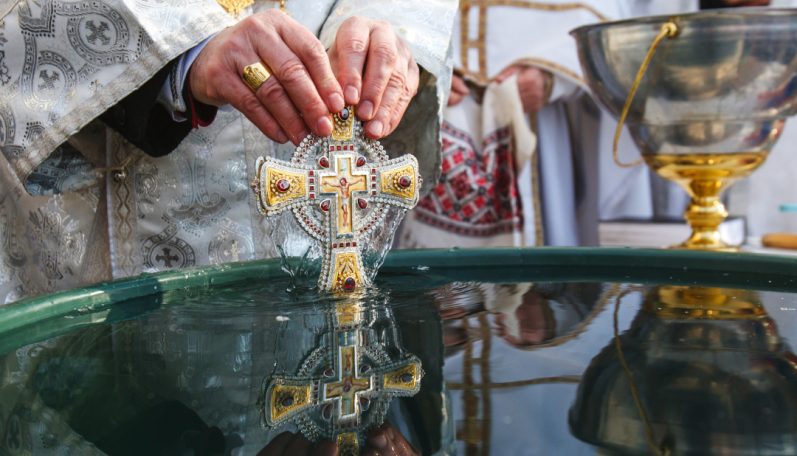 У Святому Письмі сказано, що під час хрещення на Ісуса із неба у вигляді голуба зійшов Святий Дух, і пролунав голос Божий, тому свято і називається Богоявленням. У всіх храмах на Хрещення служиться Святкова Літургія, яка завершується великим освяченням води. Обряд освячення води виник ще з перших часів християнства за прикладом Ісуса Христа, який освятив води Йордана.