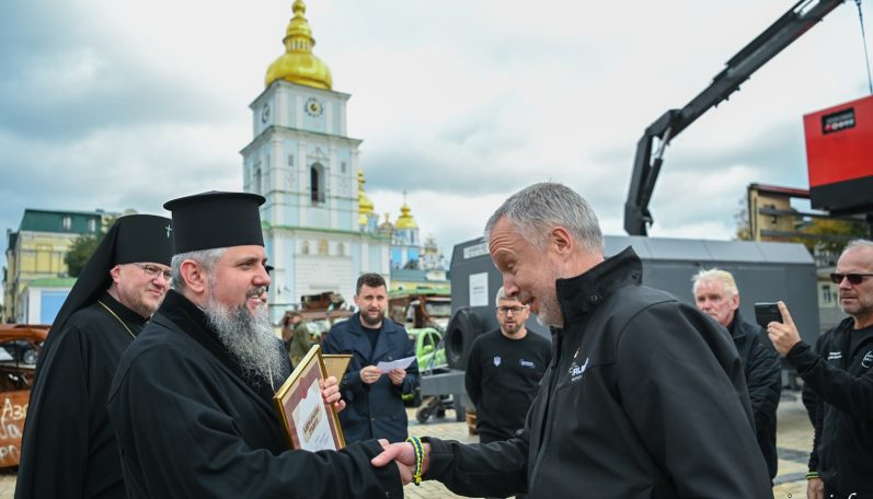 Митрополит Київський і всієї України Епіфаній 15 жовтня на Михайлівській площі передав разом з благодійниками і волонтерами три потужних електрогенератори для лікарень столиці.