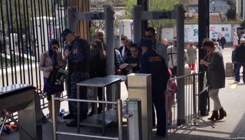 На Великдень у Севастополі вірян, які йшли з великодніми кошиками до Свято-Володимирського собору у заповіднику “Херсонес Таврійський”, пропускали через металошукачі і оглядали їхні сумки й особисті речі.