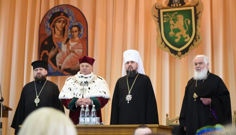 Своєю чергою ректор університету Володимир Снітинський привітав Блаженнійшого з отриманням почесного титулу та наголосив на важливості об’єднання Помісної Української Православної Церкви для процесу зміцнення української державності.