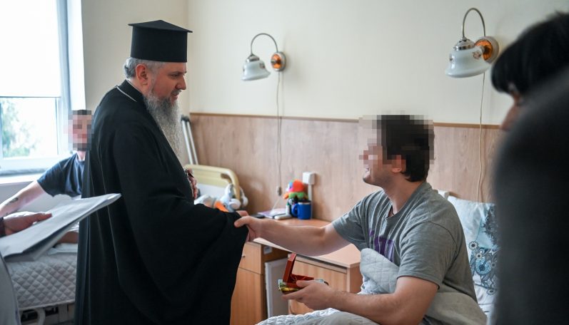 Після відправи в актовій залі установи Митрополит Епіфаній подякував військовослужбовцям за захист Батьківщини, а лікарям – за піклування про поранених, і відзначив церковними нагородами воїнів, які проходять тут лікування, а також керівництво й співробітників медичного закладу.