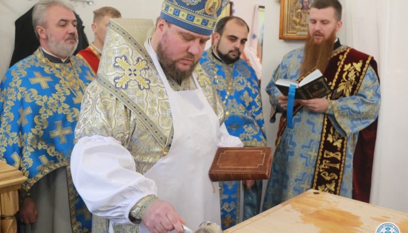 У співслужінні канцлера консисторії протоієрея Віталія Лопушанського, настоятеля протоієрея Вадима Бакуна та запрошеного духовенства архієпископ звершив у новоосвяченому храмі Божественну літургію.