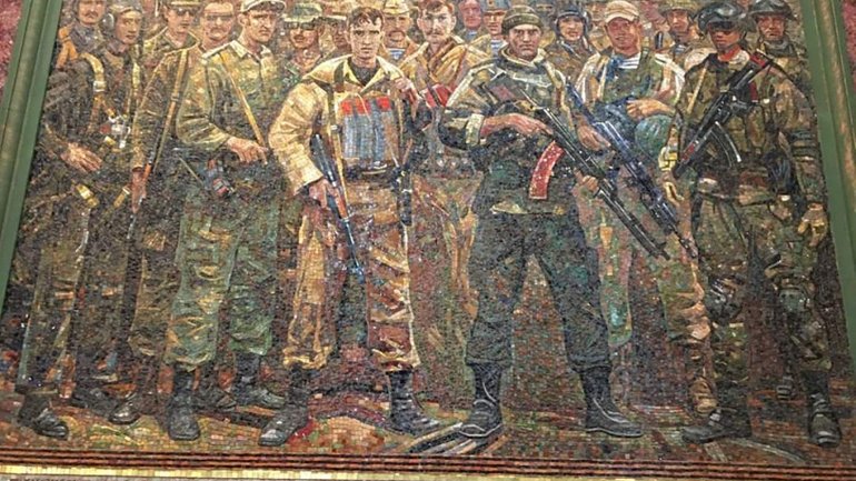 Раніше, як відомо, у головному храмі ВС РФ мали встановити мозаїки із зображення Йосипа Сталіна, а також Володимира Путіна та інших його сучасників, що брали участь в анексії Криму. Проте згодом мозаїку із зображенням керівника СРСР Сталіна перенесли до музею в парку “Патріот”, який розташований по сусідству з храмом, а замість нього на полотні став красуватися надпис зі слоганом “Піднімемо над Берліном прапор перемоги”.
