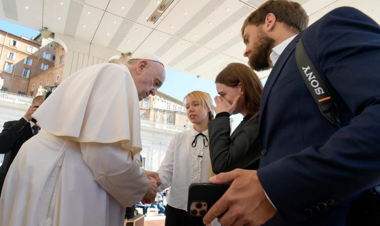 Папа Римський Франциск зустрівся сьогодні з дружинами двох українських офіцерів полку «Азов», які зараз перебувають у Маріуполі. Українки написали листа до Папи Франциска й отримали запрошення приїхати до Ватикану.
