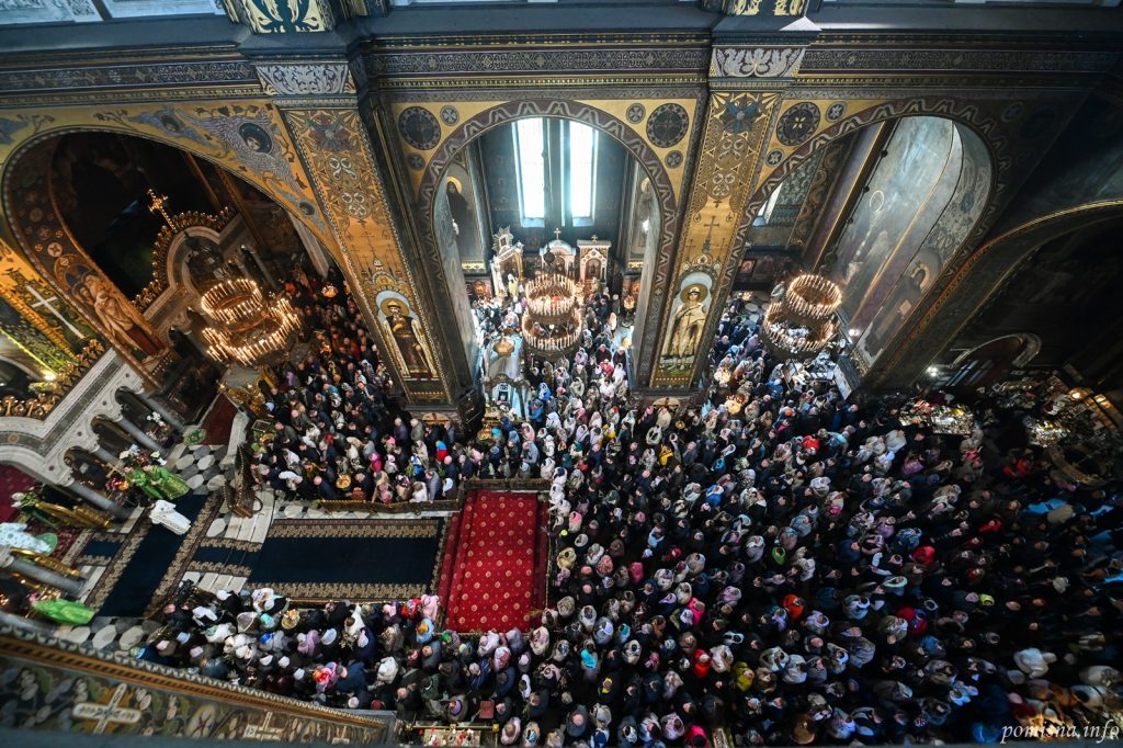 Після читання Євангелія Предстоятель прочитав особливу молитву до Господа за нашу Батьківщину, яка переживає час важких випробувань і небезпеки. Під час відправи лунали молитовні прохання за воїнів, які захищають Україну, за владу і наш народ та за спокій душ усіх полеглих оборонців Батьківщини і мирних жителів, які загинули під час війни.