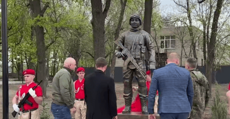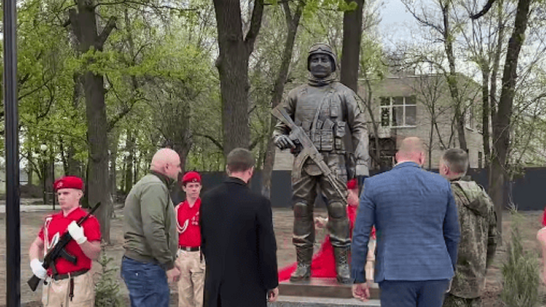 Окупанти зазначають, що це перший на Запоріжжі пам’ятник бійцям так званої «СВО».