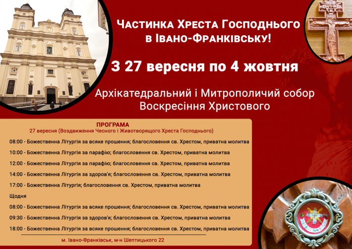 Цього дня і протягом тижня в Івано-Франківську кожен охочий зможе вшанувати частинку з того самого Хреста, на якому розіп’яли Ісуса, повідомляється на сайті УГКЦ.