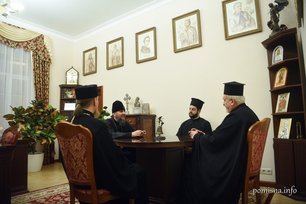 У зустрічі також взяли участь заступник голови Управління зовнішніх церковних зв’язків архієпископ Євстратій (Зоря) та ієродиякон Вселенського Патріархату о. Яків (Крочак).