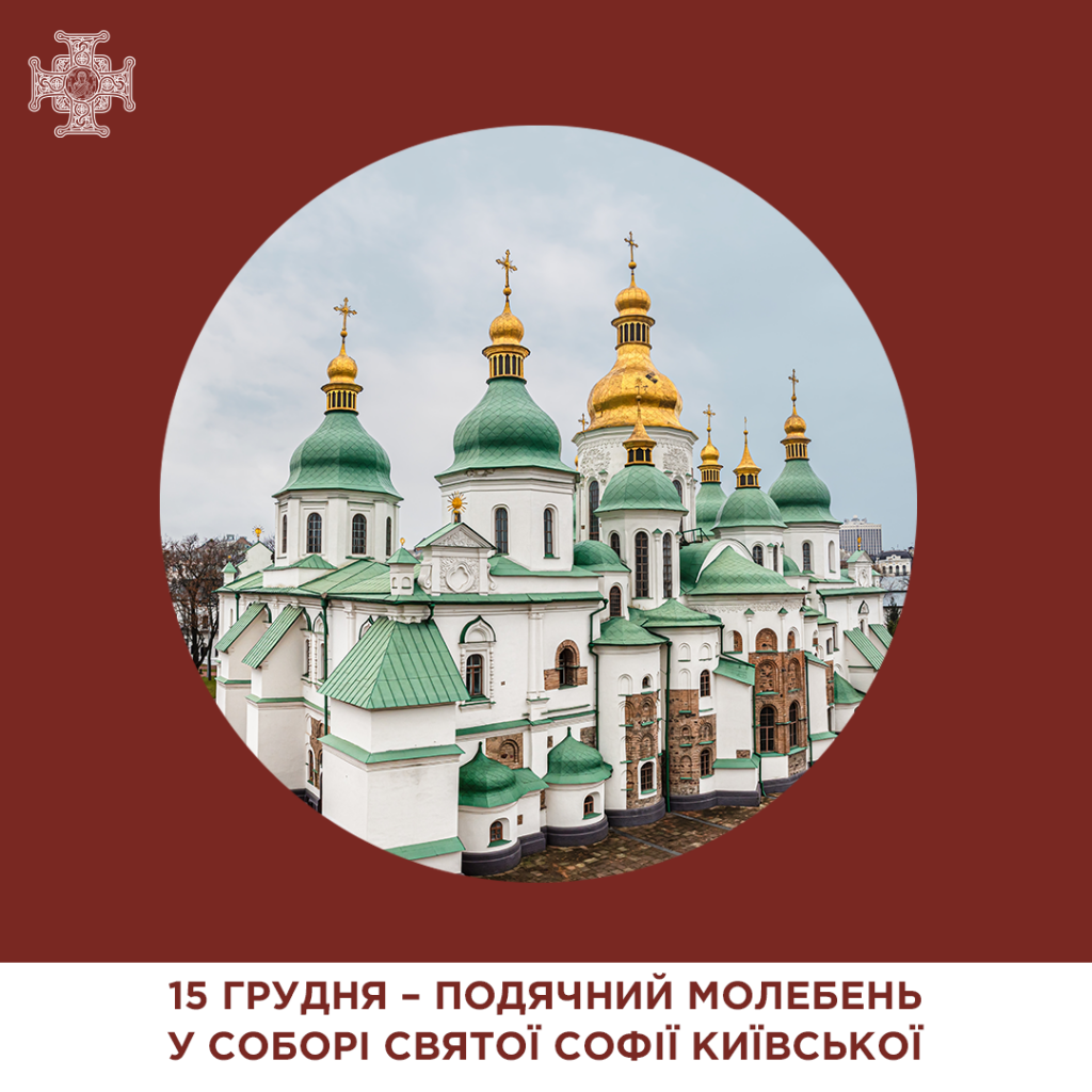 15 грудня, в другу річницю Об’єднавчого Собору і утвердження єдиної помісної Української Церкви, предстоятель ПЦУ митрополит Епіфаній у співслужінні з архієреями відслужить подячний молебень у Соборі Святої Софії Київської.