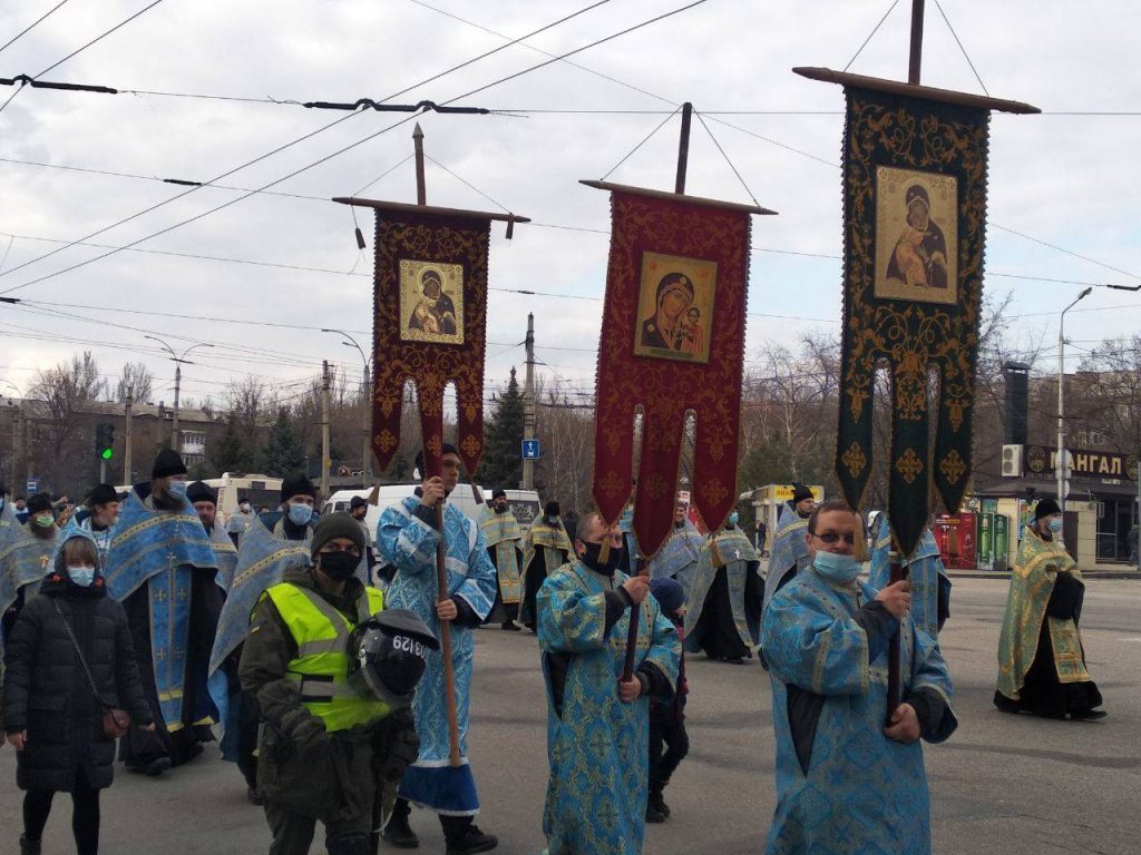 Нагадаємо, у неділю, 21 березня, у низці міст України відбулись антиурядові мітинги. Попри те, що заходи називалися “хресними ходами”, до Бога вони мали віддалене відношення. Найяскравіше це проявилось у Запоріжжі, де виднілись не ікони, а політичні гасла, які натякали на хаос в Україні та гоніння на “канонічну церкву”.