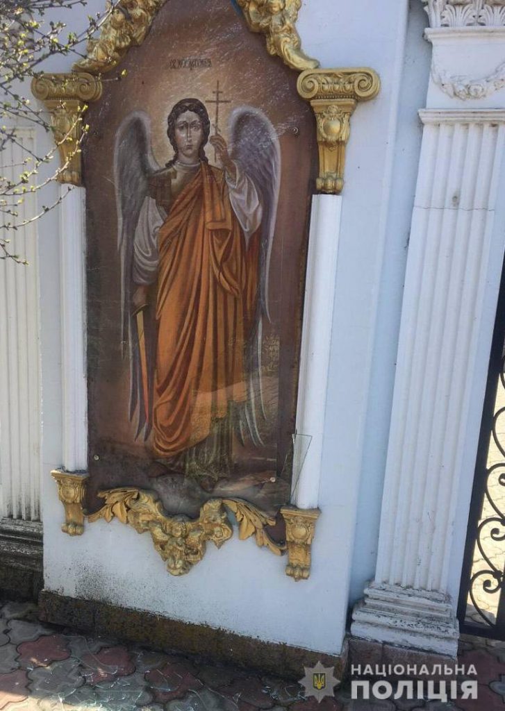 Зловмисник розбив скло на іконі святого архангела Михаїла та Гавриїла при вході до Храму Покрови Пресвятої Богородиці ПЦУ, який розташований в селі Строганівка Приазовської територіальної громади.