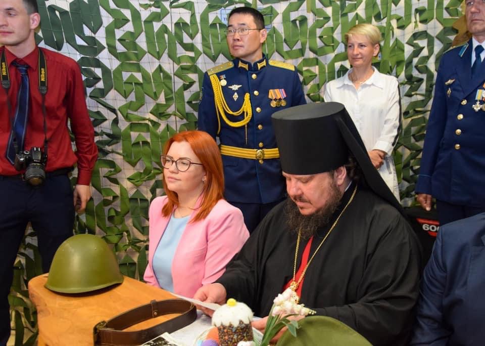 На фото єпископ РПЦвУ Каліник (Чернишов) позує із дітьми переодягненими в військову форму совєтських солдат із георгіївськими стрічками (забороненими в Україні). Він також радо вітається із вищим військовим керівництвом ЗС РФ. Каліник (Чернишов) був висвячений Онуфрієм у 2019 році в Ніжині за участі численного духовенства Московської Церкви.
