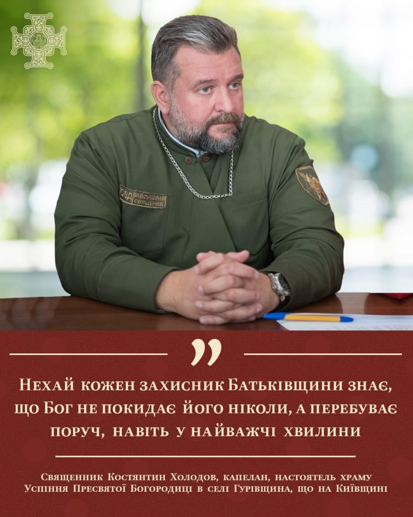 “Місія мого священничого служіння – допомагати людям, особливо у складних ситуаціях. У таких обставинах моє завдання – звернути увагу людей не на їхні власні сили, а на Всесильного Бога”, – зауважує військовий священник Костянтин Холодов.