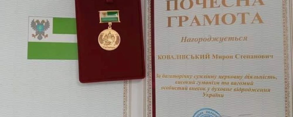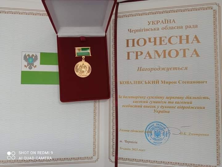Голова Чернігівської облради Олена Дмитренко нагородила почесною грамотою священника РПЦвУ Мирона Ковалівського.