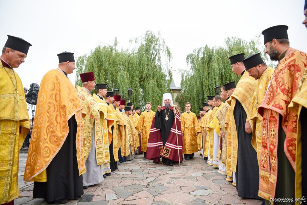 Предстоятелю співслужили митрополит Львівський Макарій, митрополит Вінницький і Барський Симеон, митрополит Луцький і Волинський Михаїл, митрополит Переяславський і Вишневський Олександр, архієпископ Чернівецький і Кіцманський Онуфрій, архієпископ Рівненський і Острозький Іларіон, архієпископ Чернігівський і Ніжинський Євстратій, архієпископ Вишгородський Агапіт, єпископ Тернопільський і Теребовлянський Павло, єпископ Харківський і Богодухівський Митрофан, єпископ Житомирський і Овруцьким Паїсій, єпископ Рівненський і Сарненський Гавриїл, намісник обителі архімандрит Софроній (Бордюк) та запрошене духовенство.