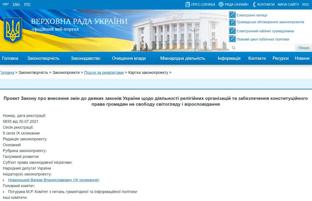 Нардеп та протодиякон УПЦ МП Вадим Новинський разом зі своїми колегами по партії ОПзЖ зареєстрували у парламенті законопроєкт №5835, який вводить громадян в оману та обмежує права на свободу віросповідання.