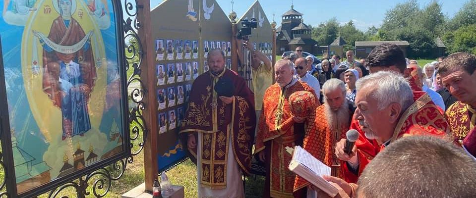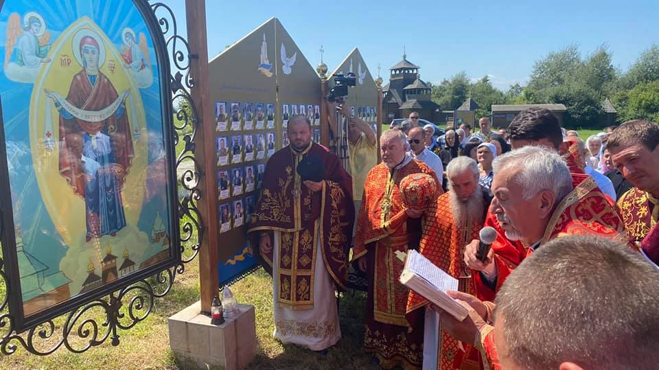 По завершенні освячення біля пам’ятного хреста було відслужено панахиду за упокій душ українських героїв, читання імен яких супроводжували удари монастирського дзвону. З поминальним словом до присутніх звернувся митрополит Андрій. Слово також мали українські воїни, представники місцевої влади та рідні полеглих у неоголошеній війні.
