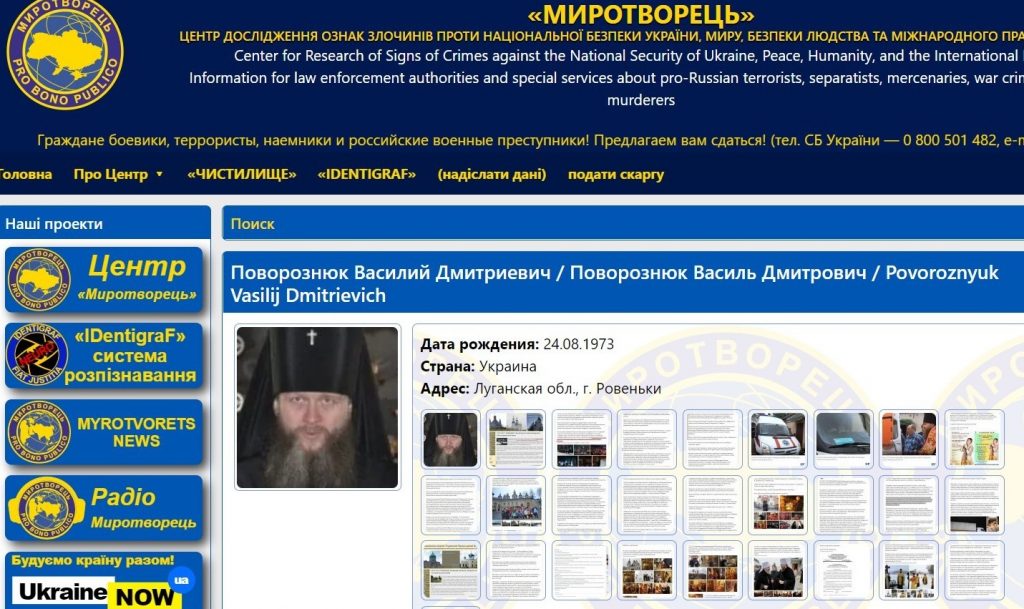 На сайті “Миротворець” зазначено, що Пантелеймон (Поворознюк Василь Дмитрович) – “активний учасник заходів під патронатом терористичної організації ЛНР, організатор паломницьких поїздок до Росії”. Також йдеться, що він “заперечує російську агресію, маніпулює суспільно-важливою інформацією”.