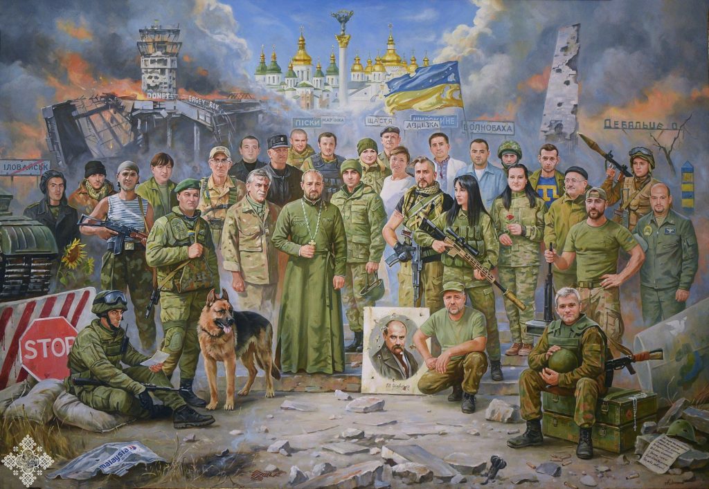 Загалом на полотні 30 людей. Серед них і військовий священник (капелан) Православної церкви України прот. Андрій Дуда.