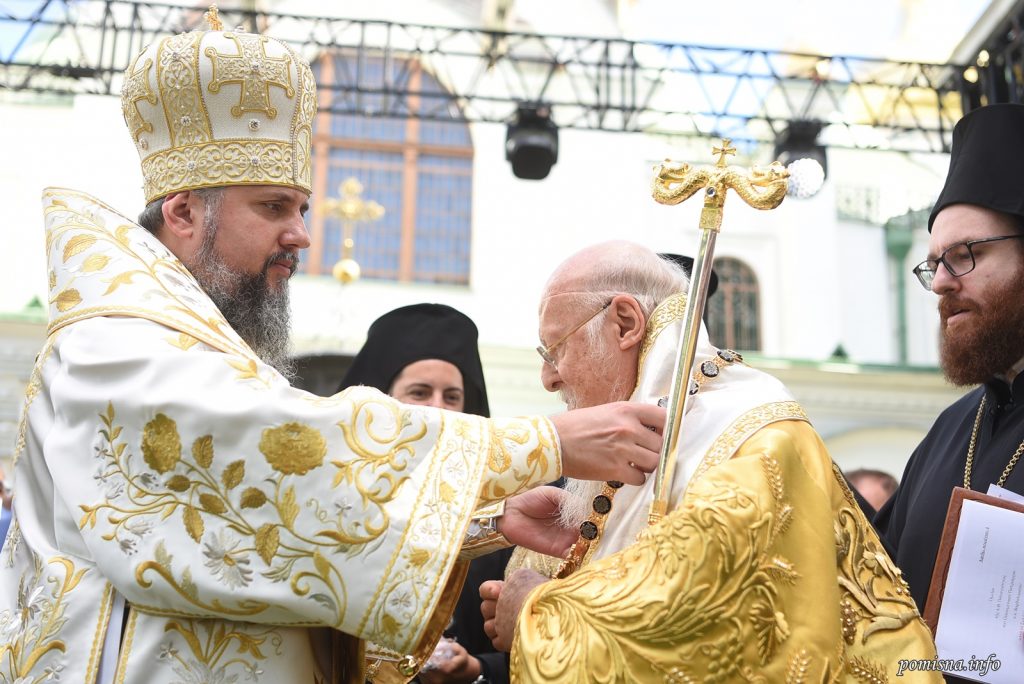 «Дозвольте мені на знак нашої особливої пошани до Вас і до всього того, що Ви зробили і робите для Української Православної Церкви і для України, від себе особисто та від нашої Церкви вручити Вам особливу нагороду, спеціально встановлену з цієї нагоди – Великий Хрест Ордену святого Архистратига Михаїла, покровителя нашої Золотоверхої столиці, Києва, і помічника всіх, хто бореться зі злом», – сказав предстоятель Православної Церкви України, звертаючись до Вселенського Патріарха.