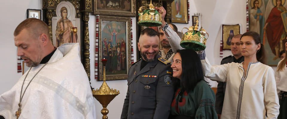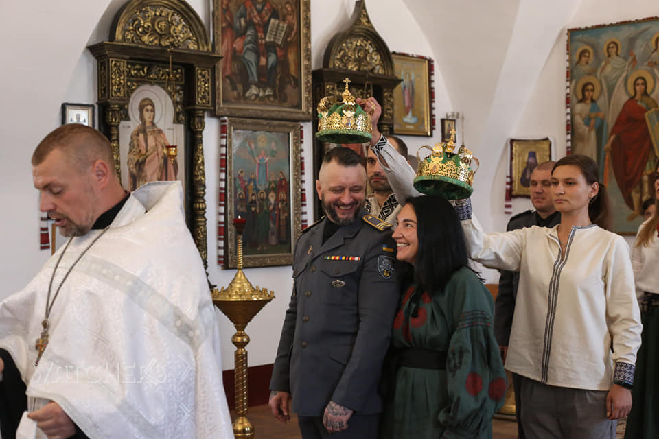 Подружжя вирішило обвінчатись через майже п’ятнадцять років після одруження. Таїнство вінчання звершив капелан Православної церкви України Костянтин Лозинський.