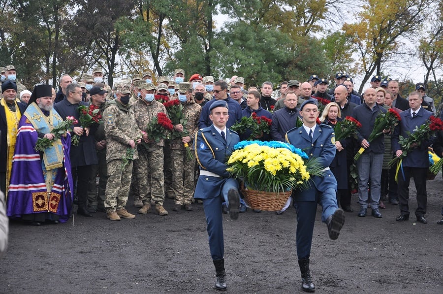 Родичі загиблих, військові, командування й курсанти ХНУПС ім. І. Кожедуба та керівництво області поклали квіти до каменя, встановленого на місці, де у 2020 році розбився літак Ан-26.