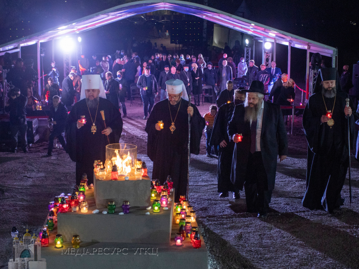Молебень провели митрополит Київський і всієї України ПЦУ Епіфаній, глава Української Греко-католицької Церкви блаженніший Святослав та головний рабин України й Києва Моше Реувен Асман.