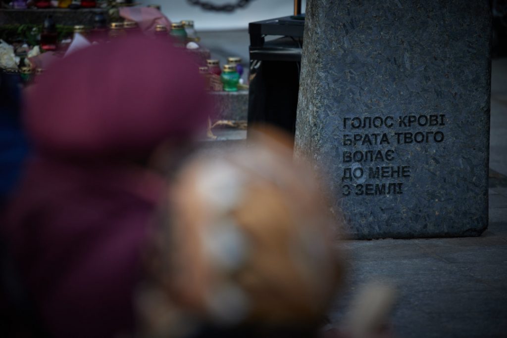 “У перші два дні нацисти стратили у Бабиному Яру 33 тисячі 771 єврея. Чоловіки вже майже всі були на фронті, і страчені тут — це переважно люди похилого віку, це жінки, діти старше 3 років, дітей молодше 3 років нацисти не жаліли, вони вбивали їх не рахуючи… Два прошарки трупів, прошарок землі, знову два прошарки трупів і прошарок землі… Над яром день і ніч кружляв нацистський літак, шум якого заглушав постріли, але не зміг заглушити страшний стогін, який, за словами очевидців, лунав над Бабиним Яром ще декілька днів”, – наголосив Зеленський.