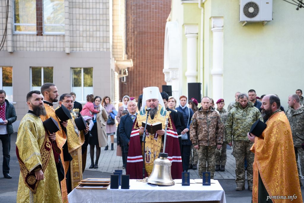У храмі на честь архістратига Михаїла, який розташований на території військової частини, Предстоятель помісної Української Православної Церкви звершив молебень за українських воїнів-захисників Батьківщини та освятив перший дзвін, який незабаром буде встановлено на побудовану поруч дзвіницю.