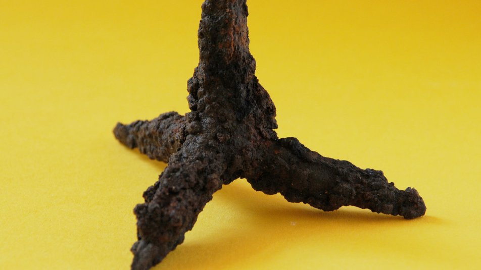 Одна зі знахідок, каже Віктор Баюк, — повністю збережений зразок «часнику»: металевий виріб із трьома шипами, який використовувався проти кінноти та піхоти ворога шляхом розсипання його перед оборонними мурами Окольного міста.