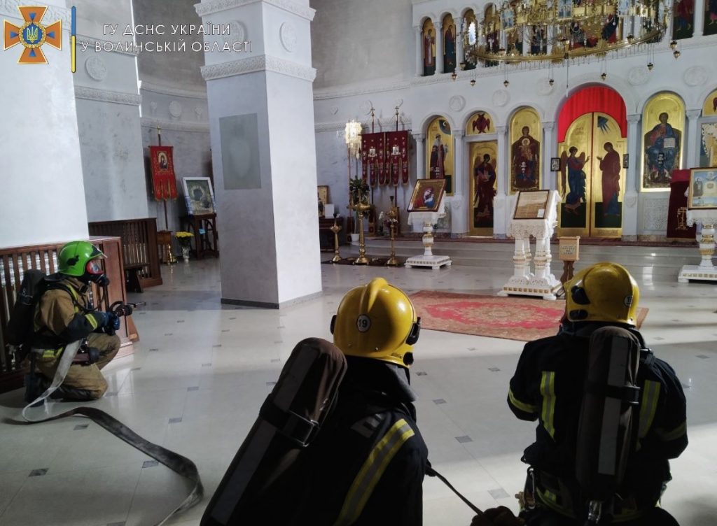 На території церкви Воскресіння Словущого у місті Ковелі на Волині відбулися гарнізонні тактико-спеціальні навчання рятувальників.