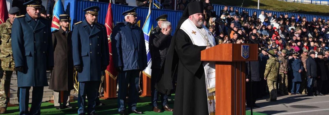 У добру путь офіцерів благословив керуючий Харківською єпархією – єпископ Харківський і Богодухівський Митрофан. Архієрей прочитав молитву та закликав на випускників вишу Боже благословення. Владику Митрофана супроводжував військовий капелан ХНУПС ієрей Серго Бубашвілі, йдеться на сайті ПЦУ.
