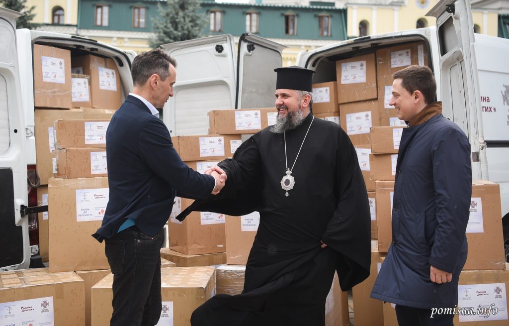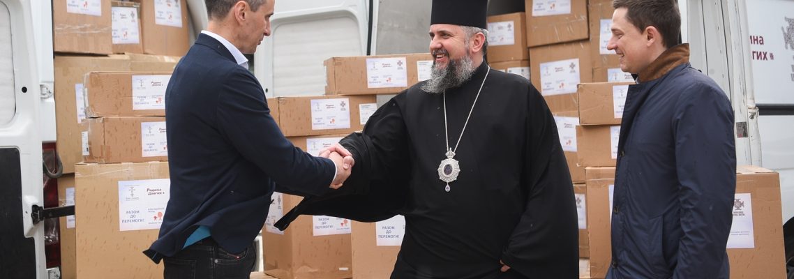 Митрополит Київський і всієї України Епіфаній 13 липня на подвір’ї Свято-Михайлівського Золотоверхого собору передав у 118 лікарень по всій Україні медикаменти для українських військових та цивільних.