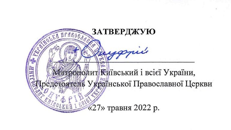 1. Митрополит Київський і всієї України та єпархіальні архієреї мають кутовий штамп, бланк із символікою та круглу печатку з іменем і титулом.