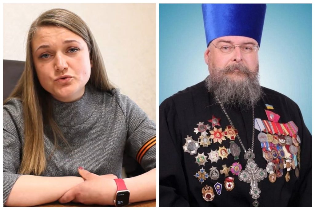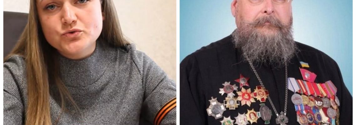 Призначена окупантами мер Наталія Романіченко та священник УПЦ МП Анатолій Зигар