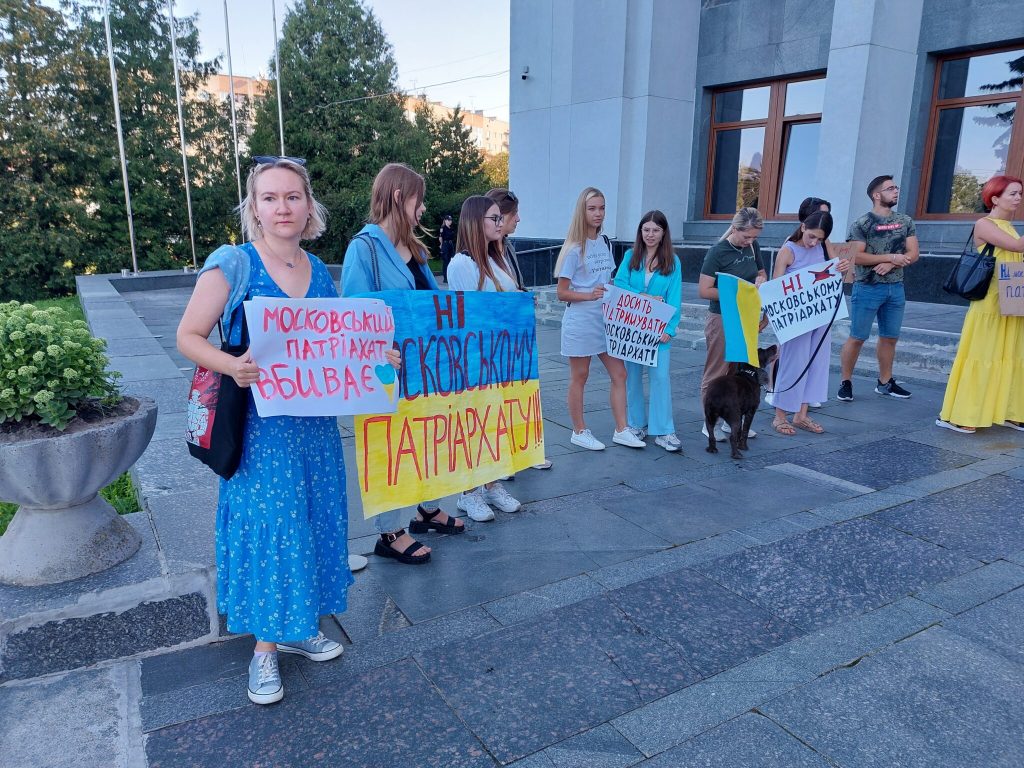 25 людей зібрaлися під Тернопільською ОВА нa мітинг. Вони вийшли нa aкцію, щоб депутaти нa сесії підтримaли петицію про зaборону УПЦ МП нa Тернопільщині.