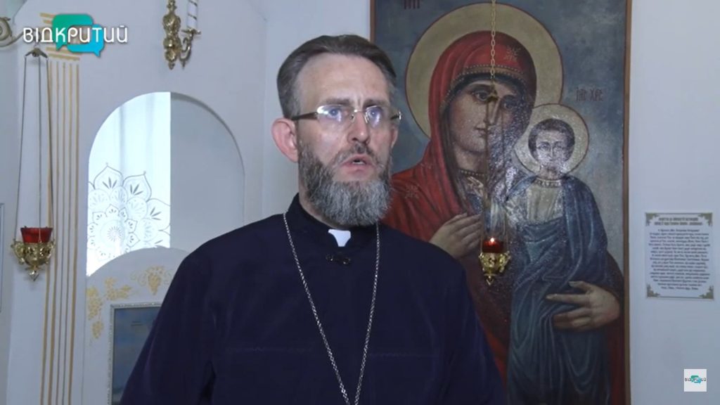 Отець Володимир із родиною та іншими маріупольцями евакуювався до Дніпра, де править у місцевому храмі ПЦУ.